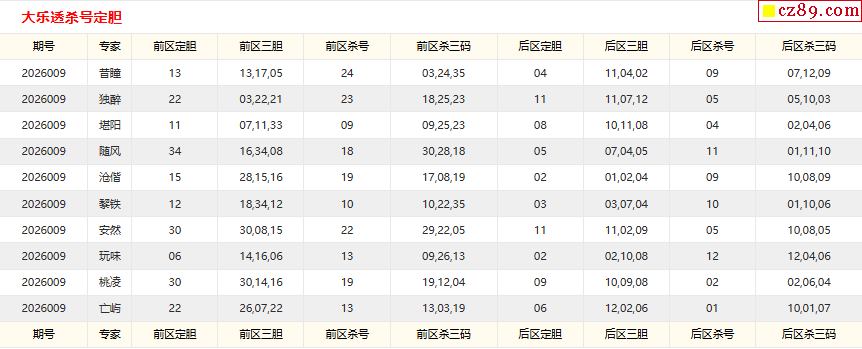 大乐透009期牛彩特邀专家前区后区杀号定胆图表