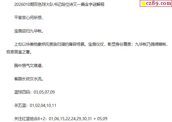 26年福彩双色球010期 大队书记段位诗另一篇