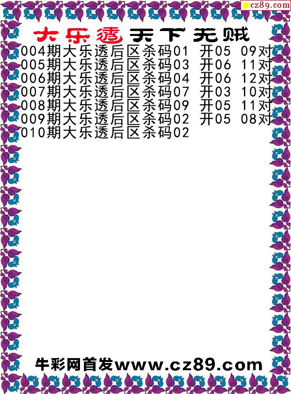 大乐透010期牛彩特邀专家前区后区杀号定胆图表