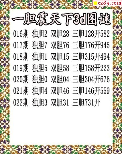 九台胆码2026024期3d图谜