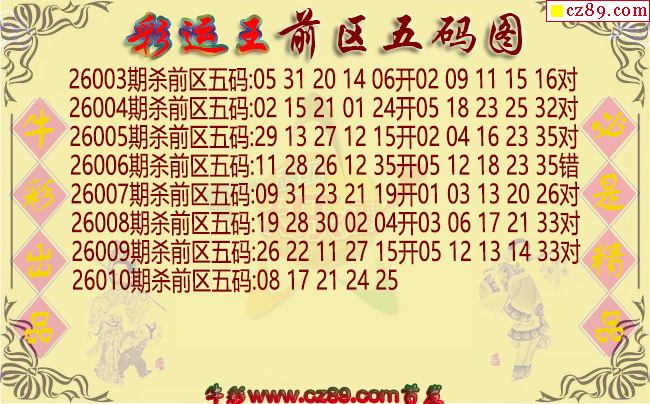 大乐透2026010期彩运王前区五码图谜