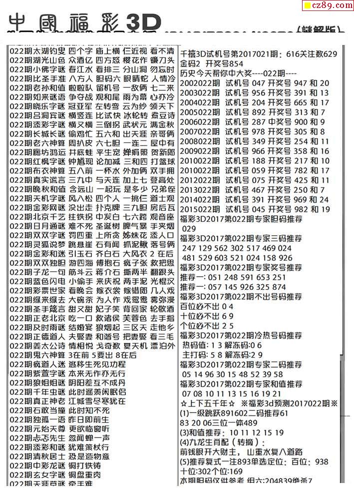 杀手+鑫马快报+字迷汇总26年022期3d图谜