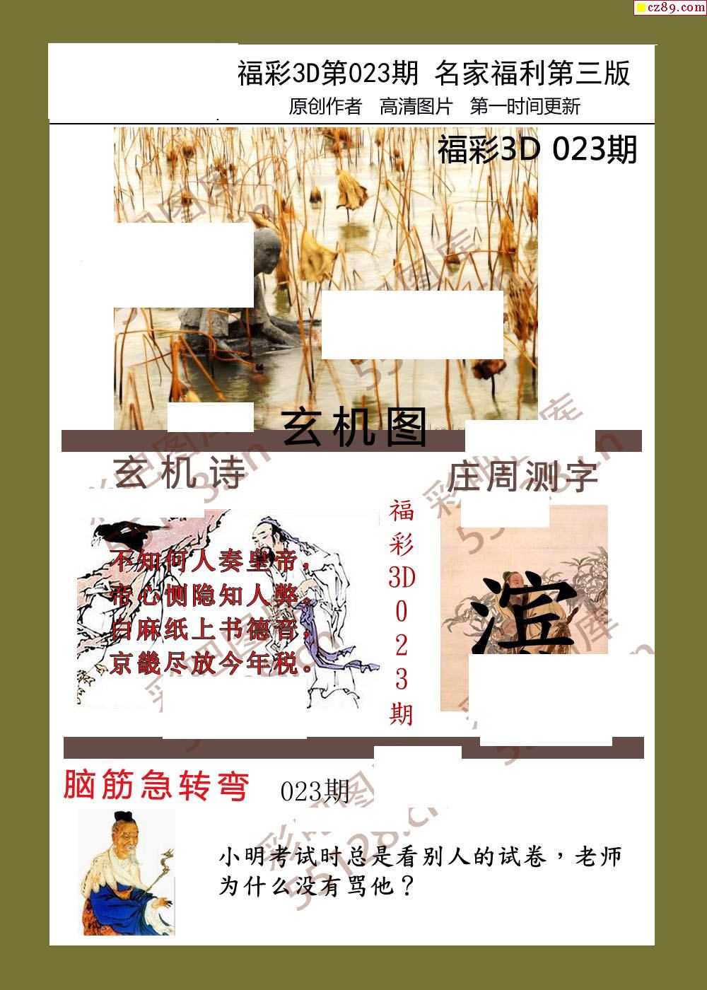 福彩名家福利彩票3d26年023期图谜