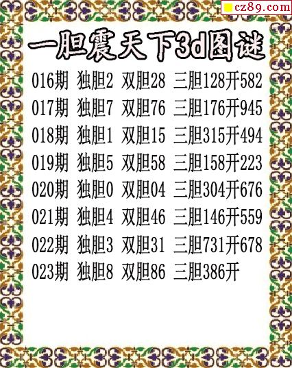无价之宝送胆2026023期3d图谜(原创)