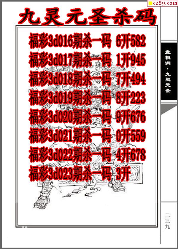 九灵元圣杀码2026023期3d图谜(原创)