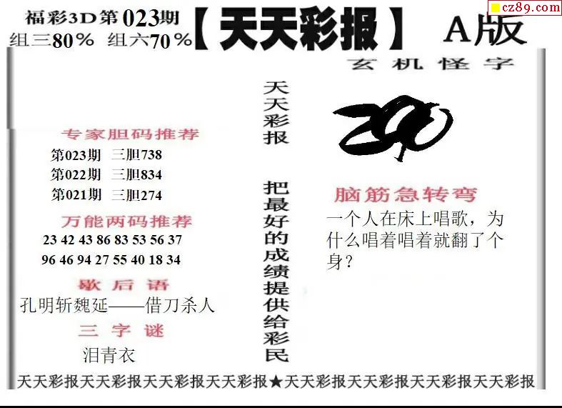 福彩3D2026023期天天彩报A版 天天彩报B版