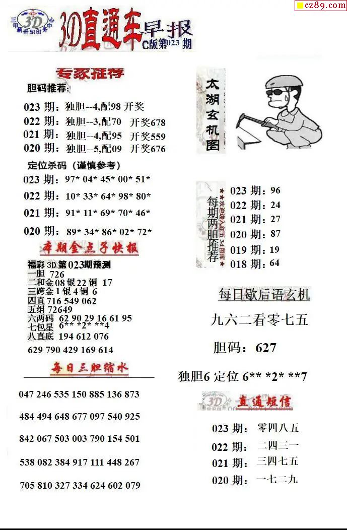 福彩3D2026023期直通车早报ABCD版