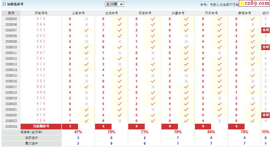 26年024期彩宝贝专家福彩3D杀号定码图表