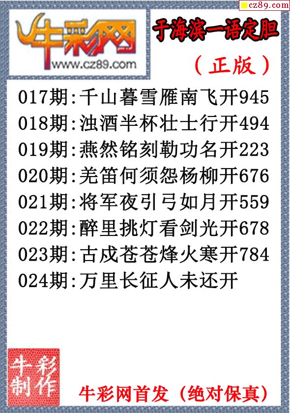 26年024期于海滨一语定胆(原创正版)