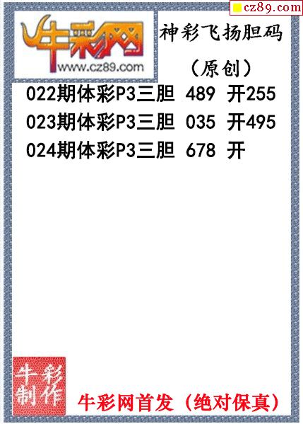 神彩飞扬三胆024期体彩P3图谜(原创)
