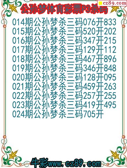 26年024期公孙梦体育彩票P3杀码图
