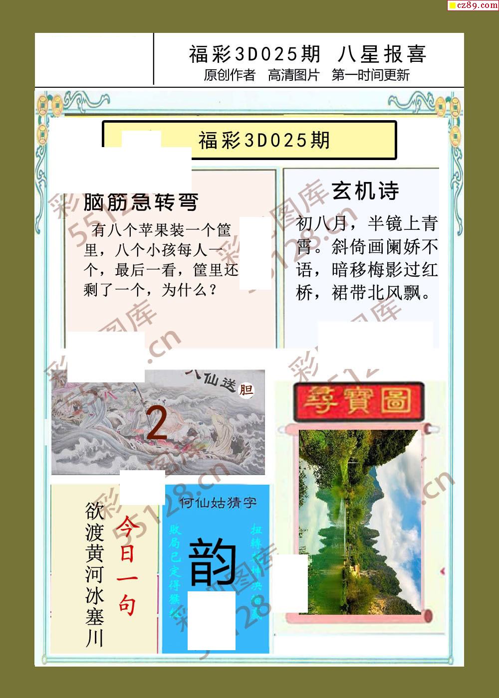 八星报喜26年025期福彩3d画谜