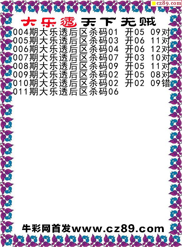 大乐透011期牛彩特邀专家前区后区杀号定胆图表
