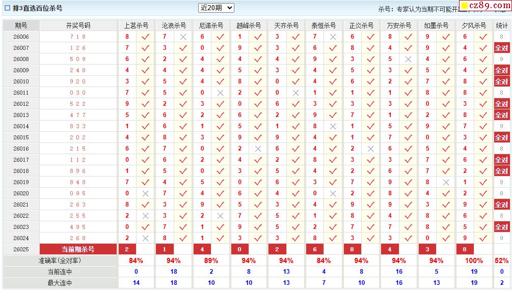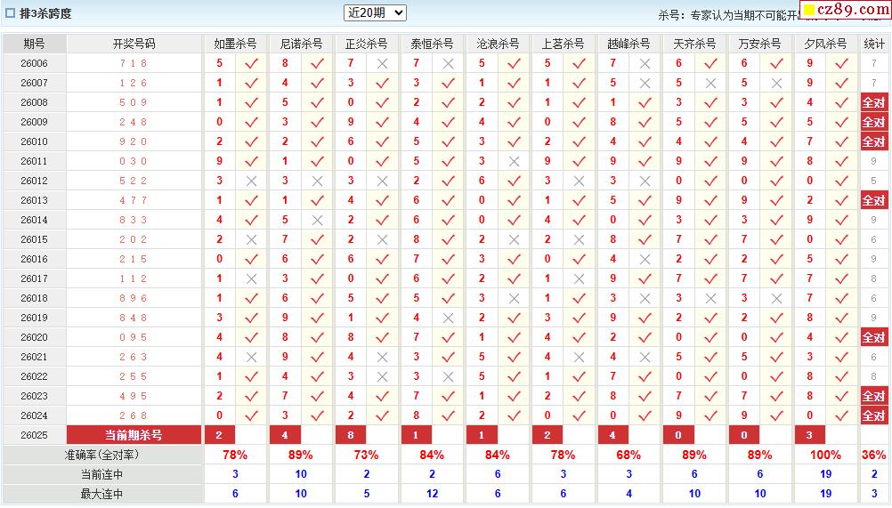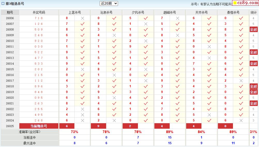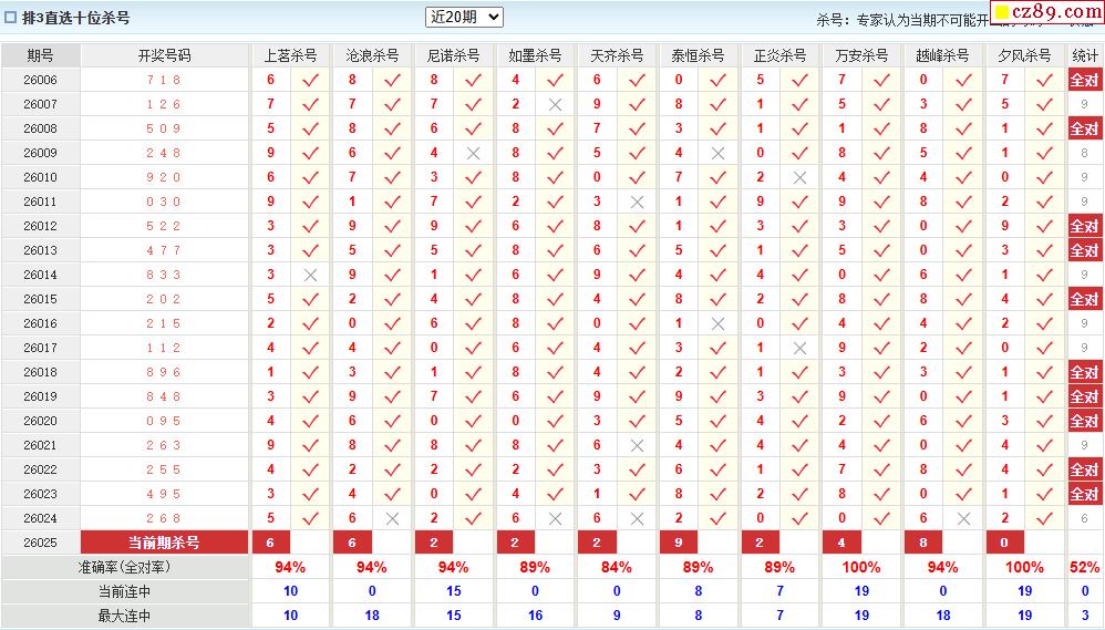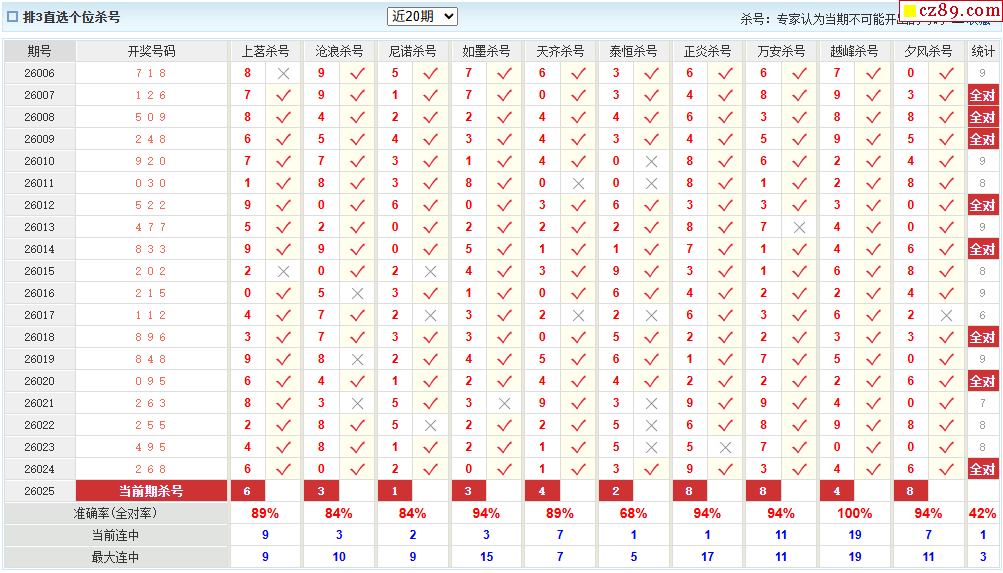 26年025期彩宝贝专家体彩P3杀号定码图表