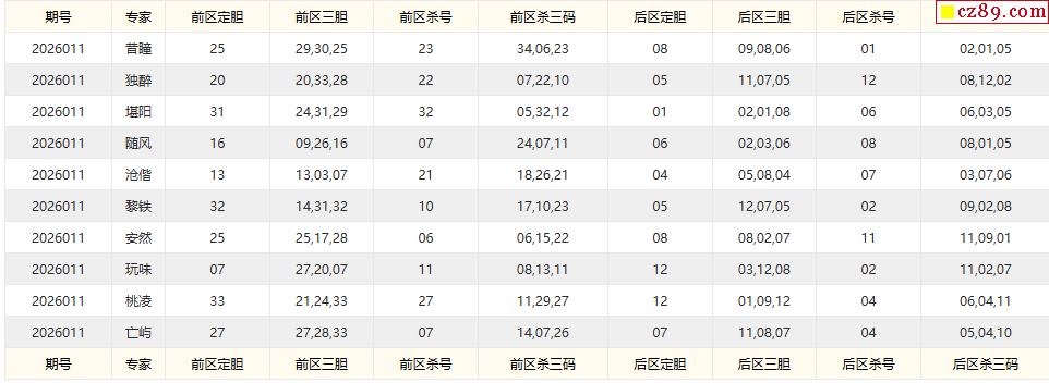 大乐透011期牛彩特邀专家前区后区杀号定胆图表