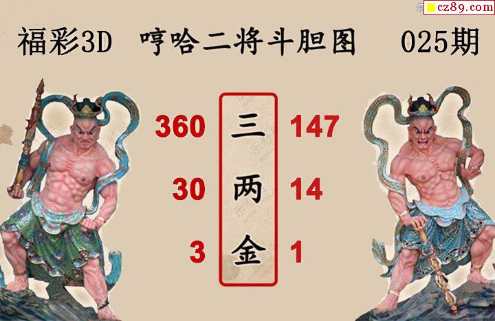 福彩3D2026025期 白鱼舟3D图谜哼哈二将斗胆图