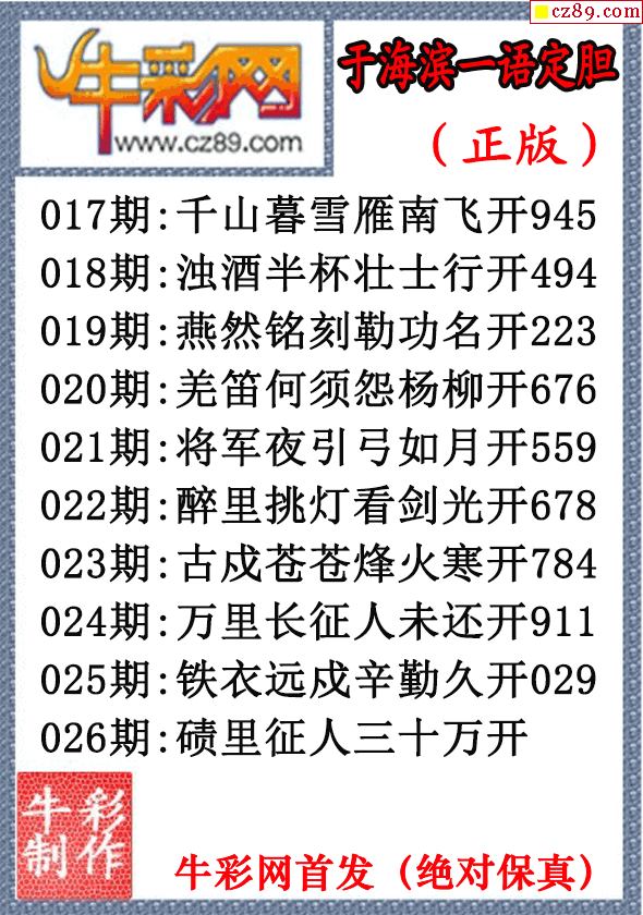 26年026期七绝圣手3d和尾字谜【牛彩网特...