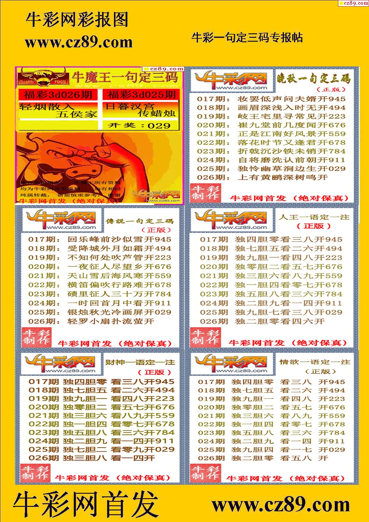 2026026期牛彩专家一句定三码彩报