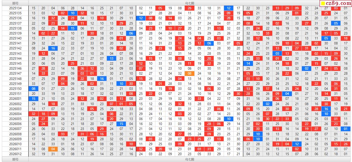 26年福彩双色球012期乌七图表