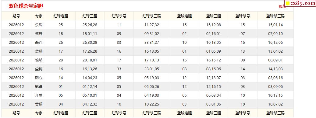 双色球012期 彩宝贝专家红蓝球杀号预测图表