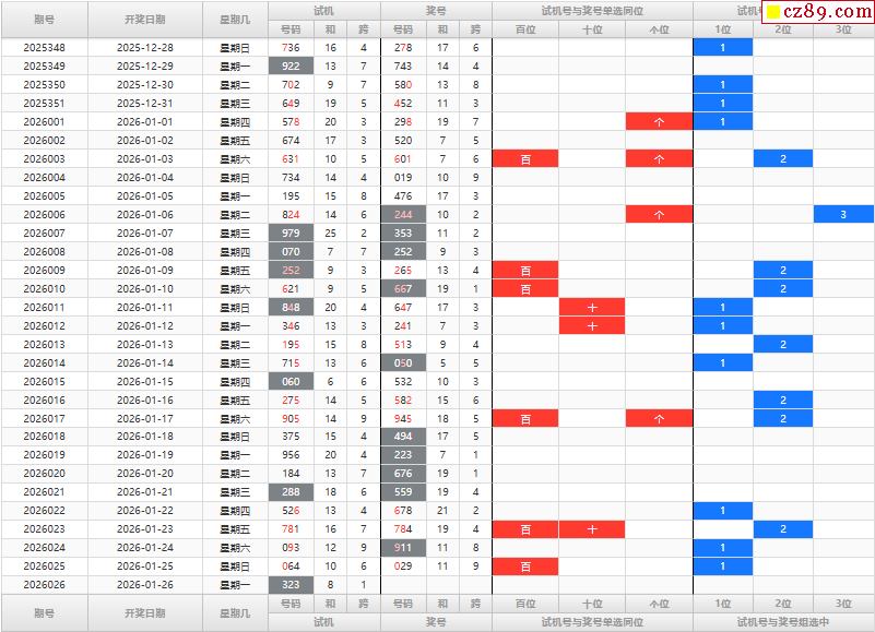26年026期福彩3D试机号后分析汇总