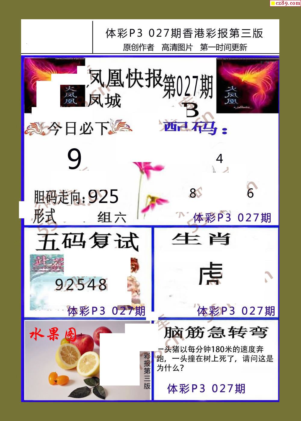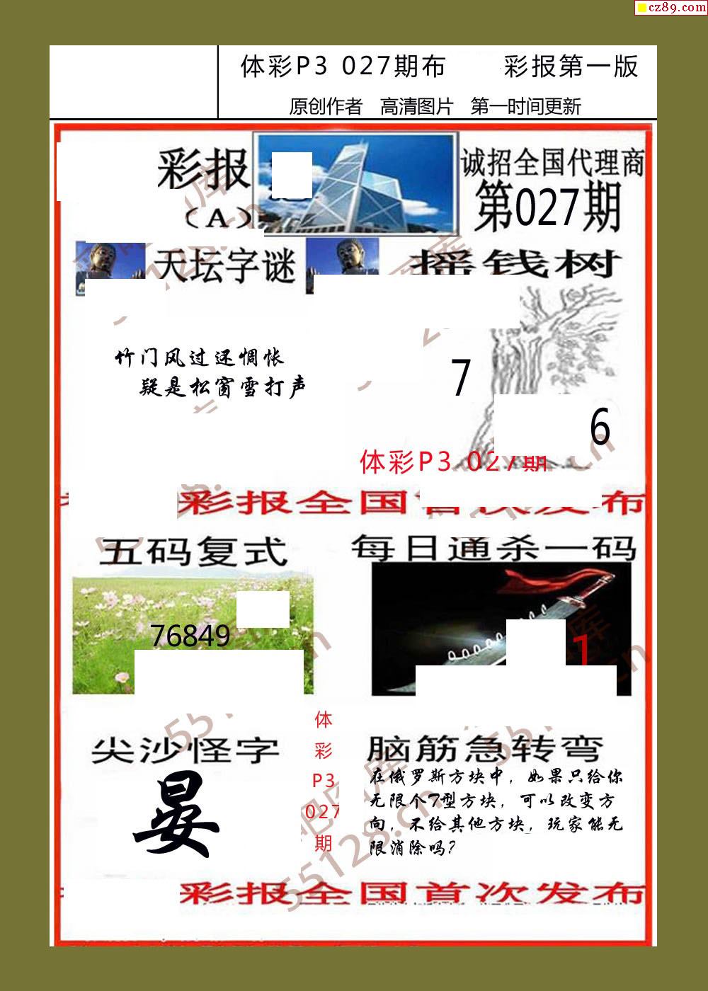 香岛彩报027期体彩p3图谜
