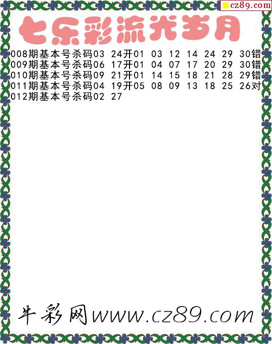 七乐彩2026012期流光岁月杀码图谜 11中3