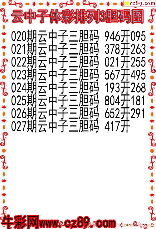26年027期云中子体彩排列3胆码图