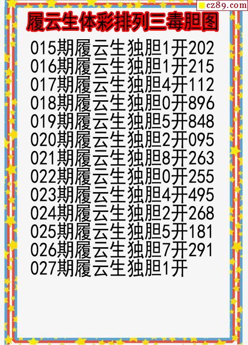 26年027期履云生体彩排列三毒胆图