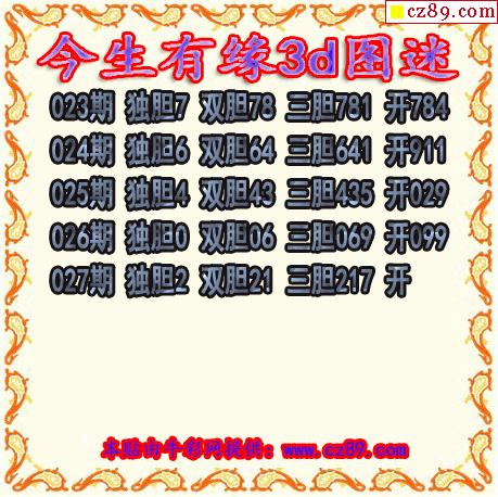 今生有缘三胆2027027期3d图谜(原创)