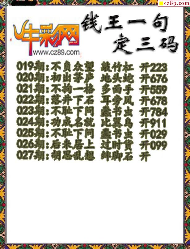 福彩3D2026027期彩赌侠一句定三码字图谜