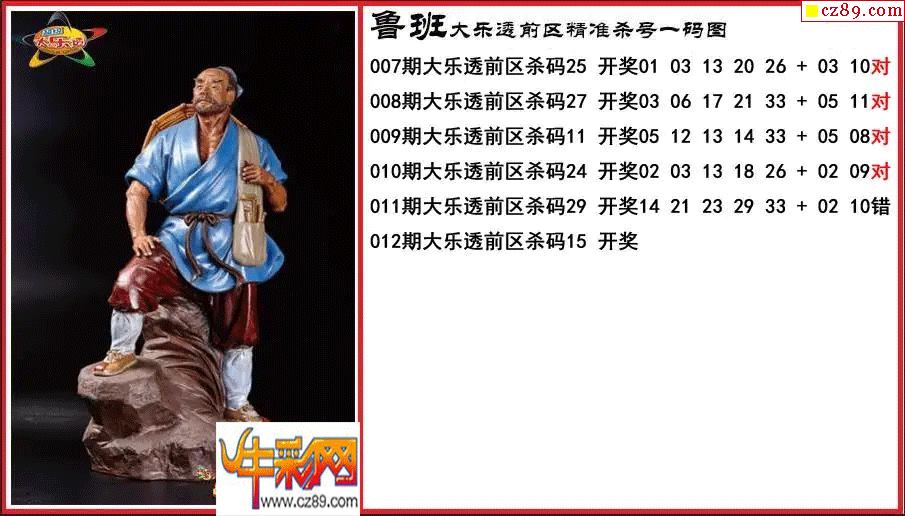 大乐透012期鲁班前区精准杀号一码图