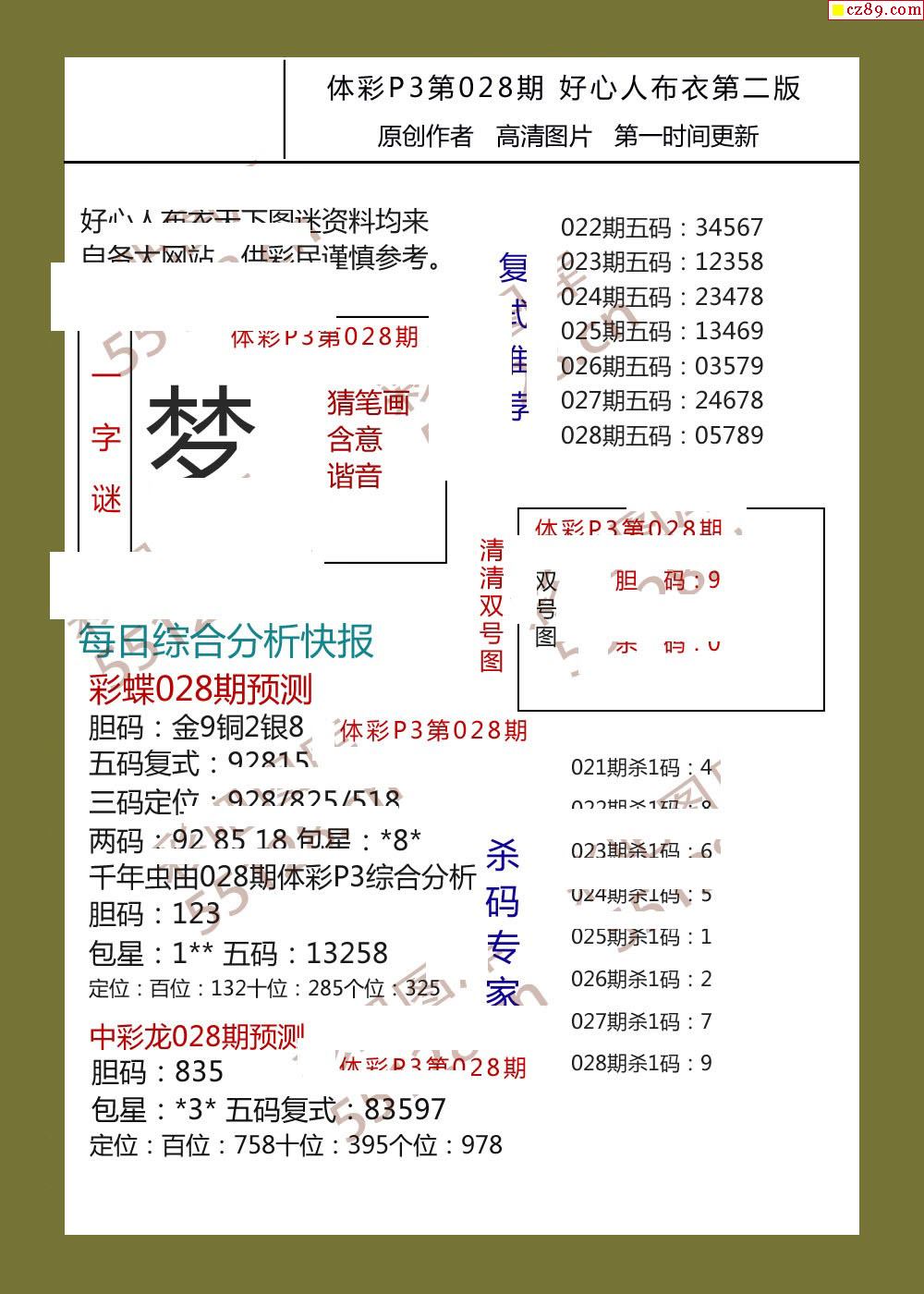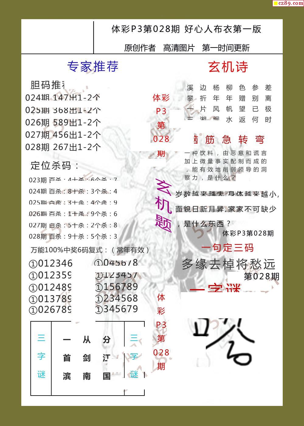 好心人布衣AB版028期体彩p3图谜