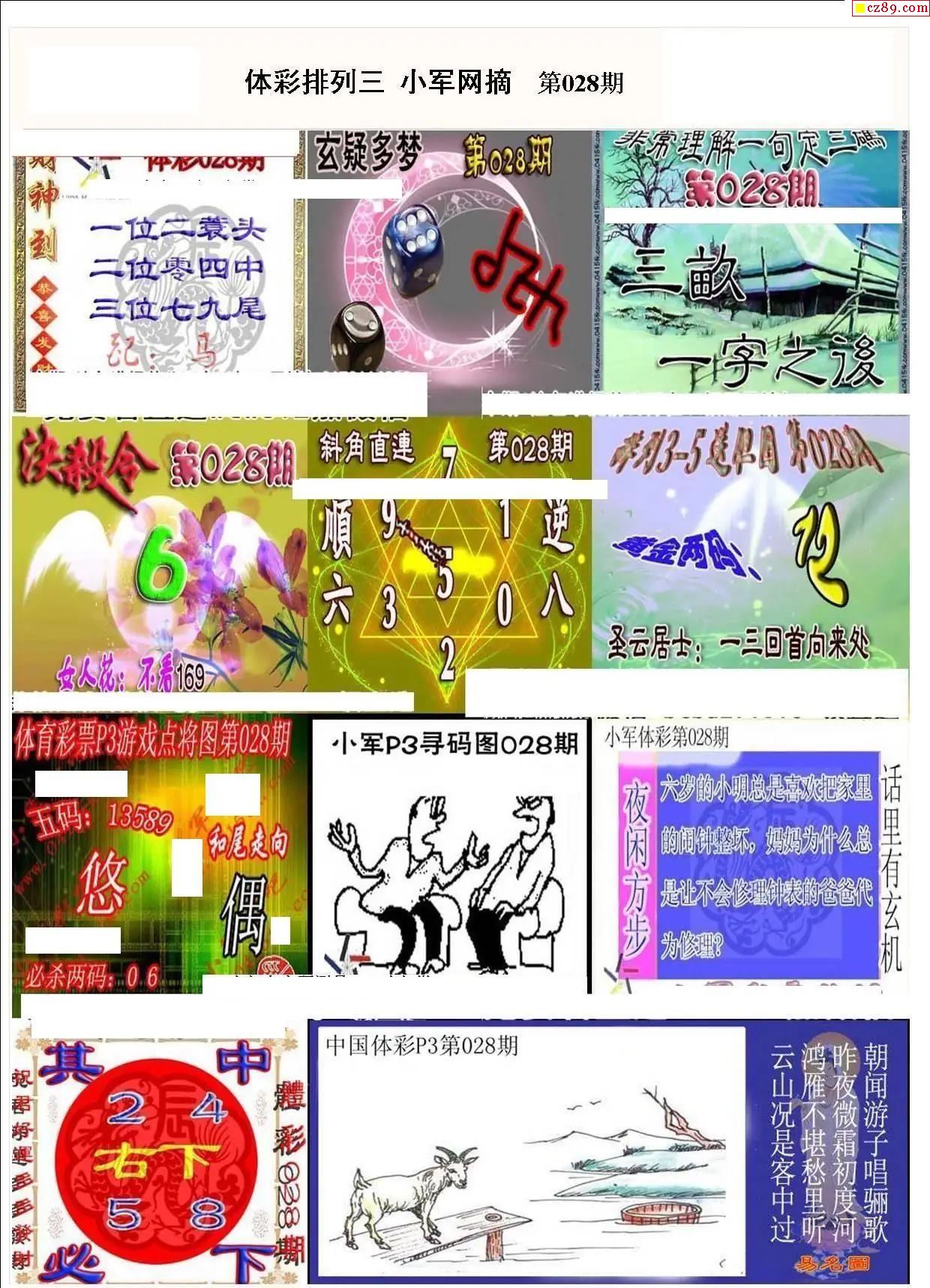 小军网摘26年028期体彩P3彩报图谜