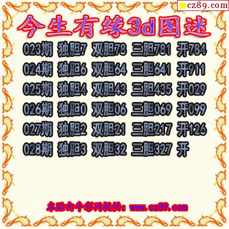 今生有缘三胆2026028期3d图谜(原创)