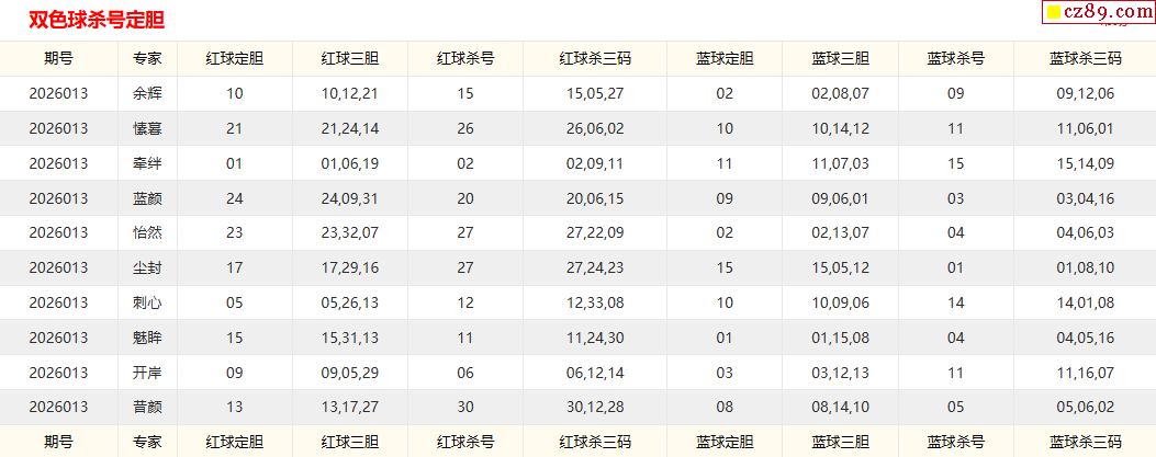 013期彩票专家双色球杀红蓝推荐汇总