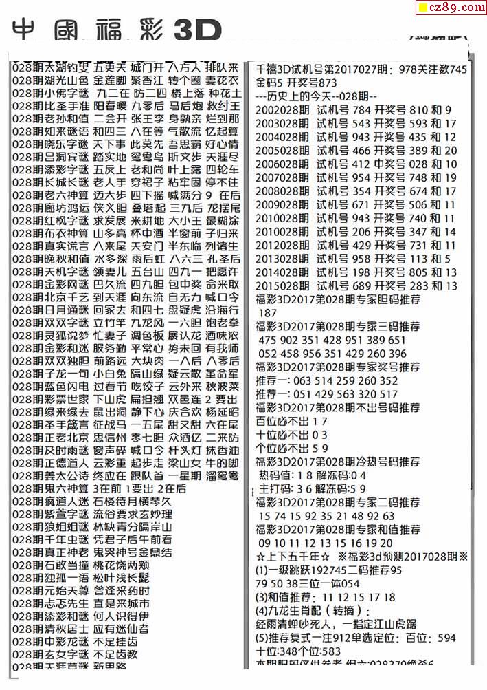 杀手+鑫马快报+字迷汇总26年028期3d图谜