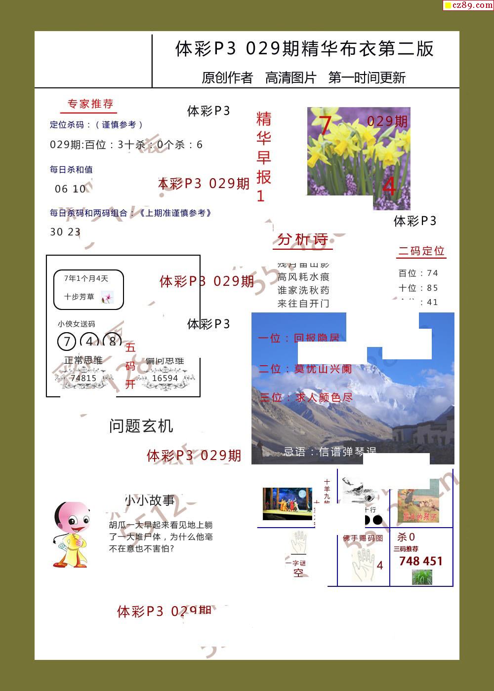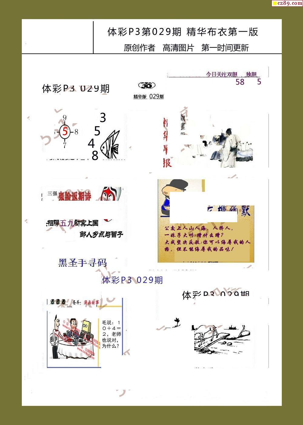 精华布衣彩报029期体彩p3图谜