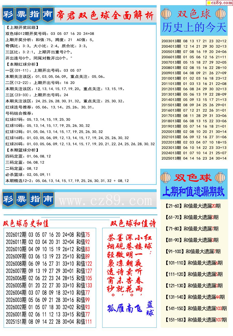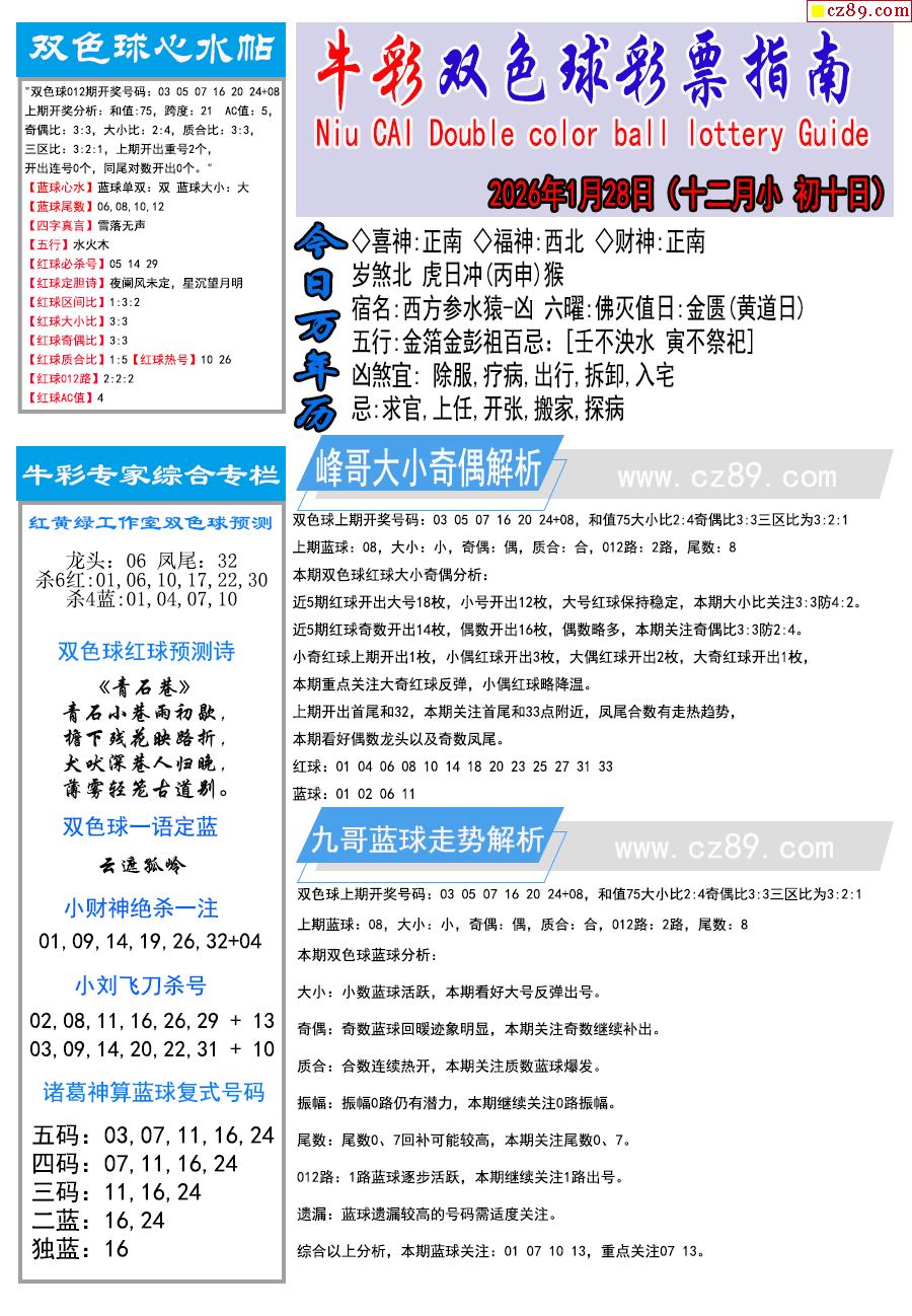26年013期双色球彩票指南【牛彩版】