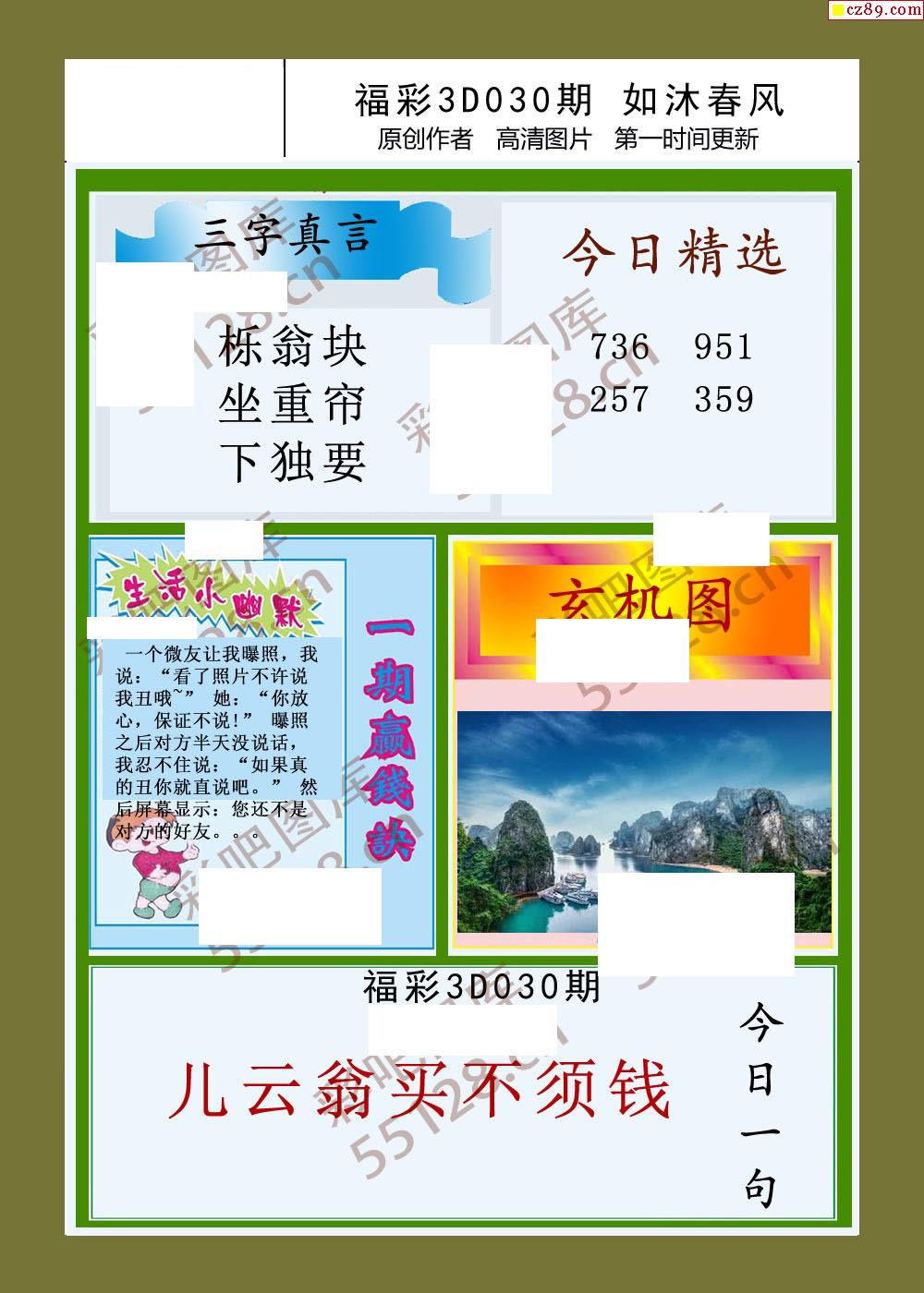如沐春风26年030期福彩3d图谜