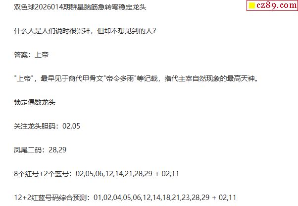 26年福彩双色球014期 群星脑筋急转弯定龙头字谜