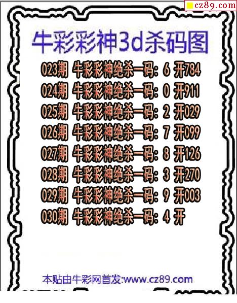 牛彩彩神杀码2026030期3d图谜(原创)
