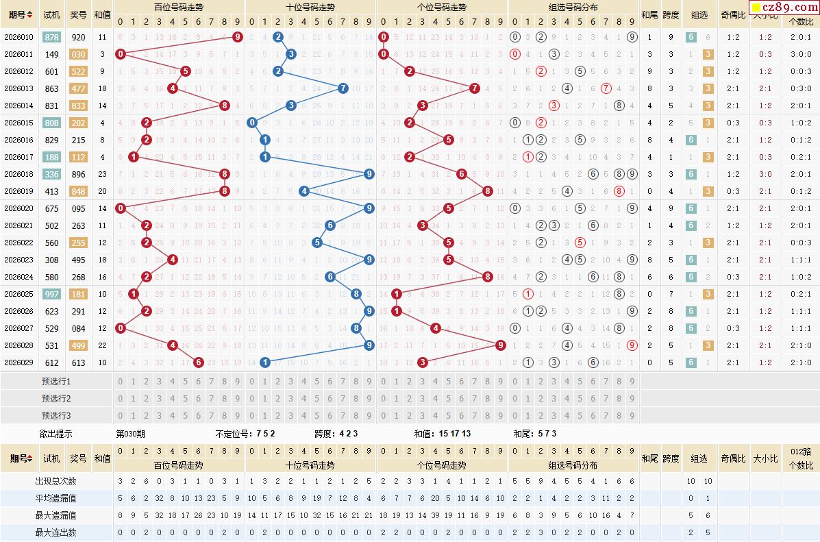 26年030期彩宝贝专家体彩P3杀号定码图表