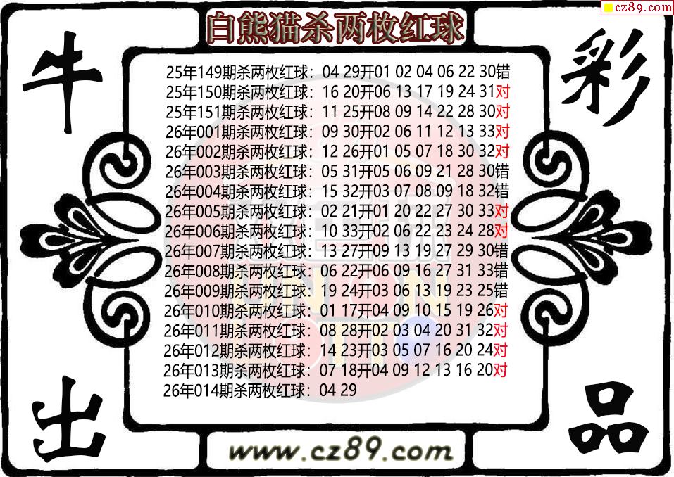 双色球014期 白熊猫杀两枚红球图迷