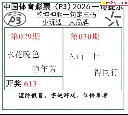乾坤一句定三码26年030期P3图谜