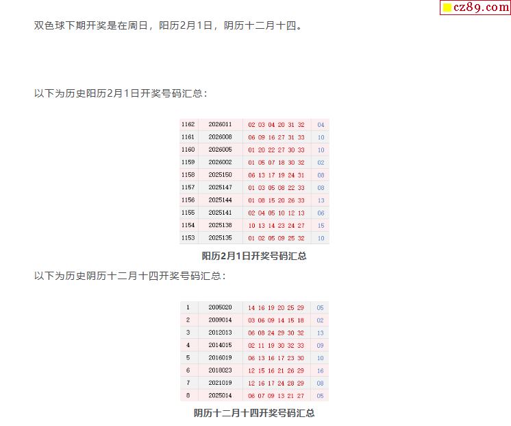 历史上的今天双色球2月1日开奖号码汇总