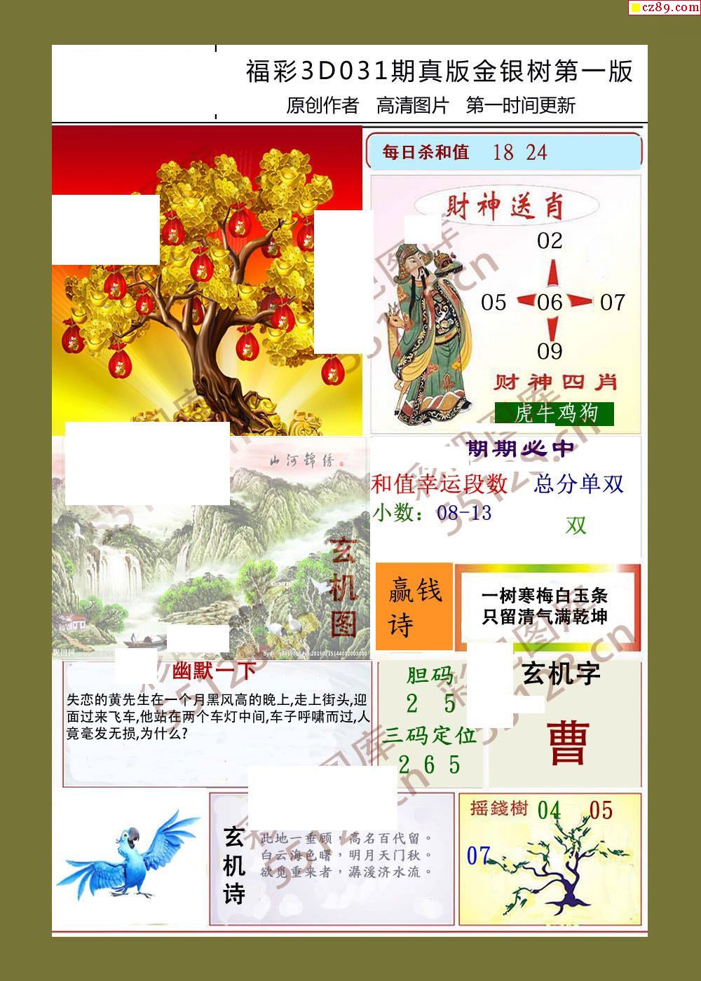 金银树26年031期福彩3d字画谜