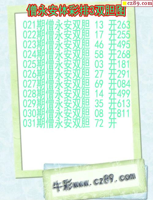 26年031期僧永安体彩排3双胆图
