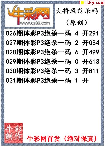 26年031期公孙梦体育彩票P3杀码图