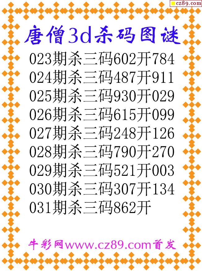 唐僧杀码26031期3d原创图谜